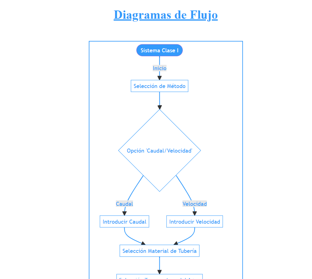 Sección en la que se presenta diagramas de flujo, para el manejo de las secciónes de calculos.